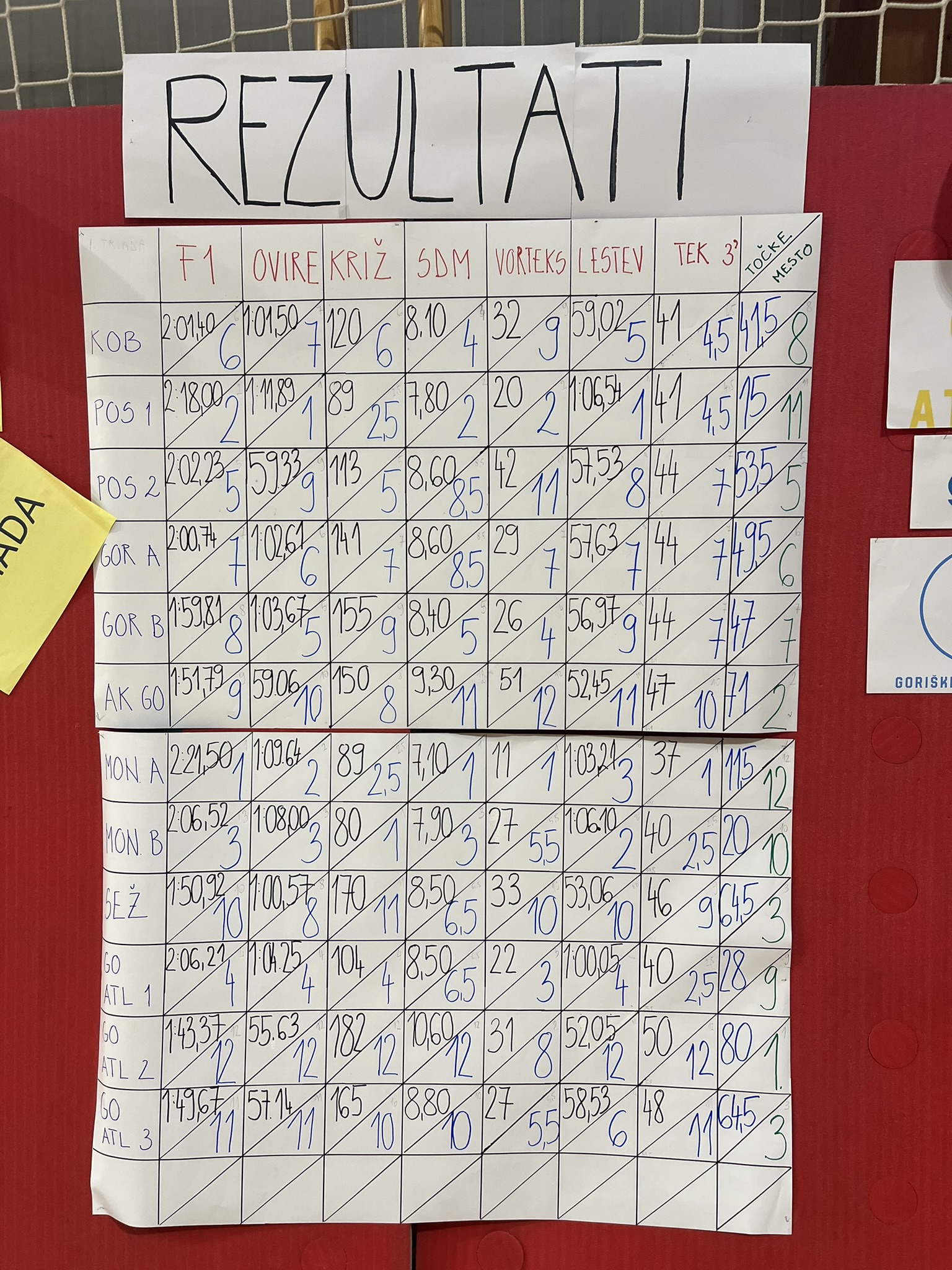 V soboto 2.3.2024 je v Novi Gorici potekalo tekmovanje v otroški atletiki. V obeh triadah je tekmovalo veliko ekip. V prvi 12 ekip, v drugi pa celo 14. 2.triada je za las, le za 1 točko izgubila bron, ampak tudi 4.mesto je odličen rezultat, čestitke našim najmlajšim atletom